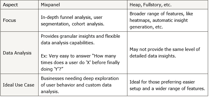 How is Mixpanel different from tools like Heap, fullstory, etc.?