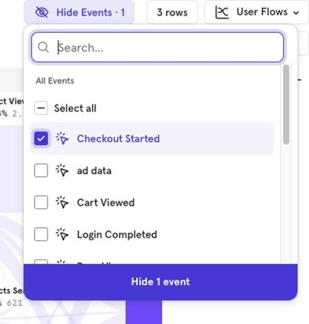 You can hide specific events from the Flows report if you’re not interested in seeing them.