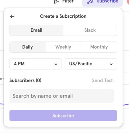 You can set up dashboard subscriptions to receive a snapshot of the dashboard via Slack or email on a recurring basis.