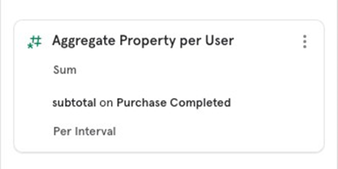 Aggregate property per user allows you to break down a report based on an aggregated calculation applied to each user. This is useful when you want to analyze behavior on a per-user basis, such as the total value of purchases made by an individual user over a specific time period.
